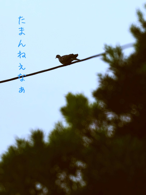 風がビュービュー吹いているのに電線にハトが…落ちそうだし。