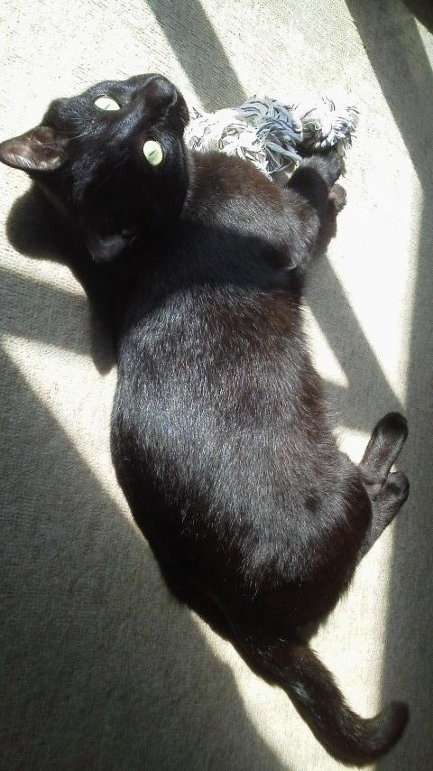 我が家の階(2階)の足場をぐるっと周った木陰でくつろいでいました。