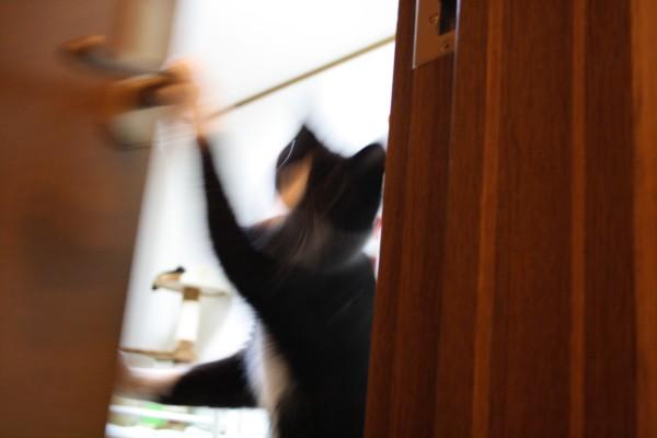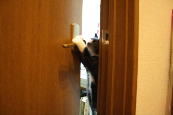しかも、ドアを半開きの状態で様子を見ていたらドアノブにジャンプ!