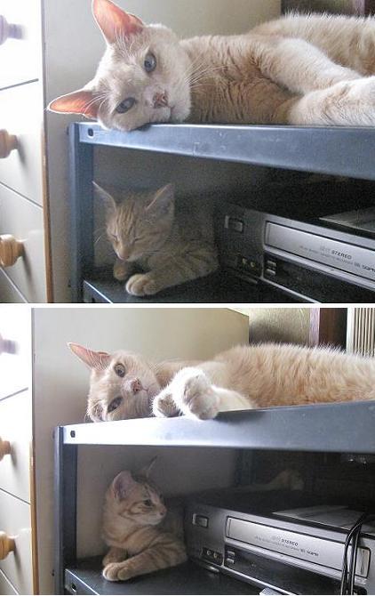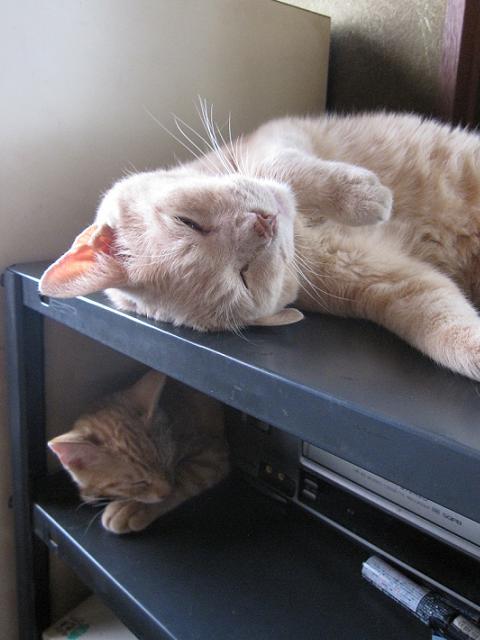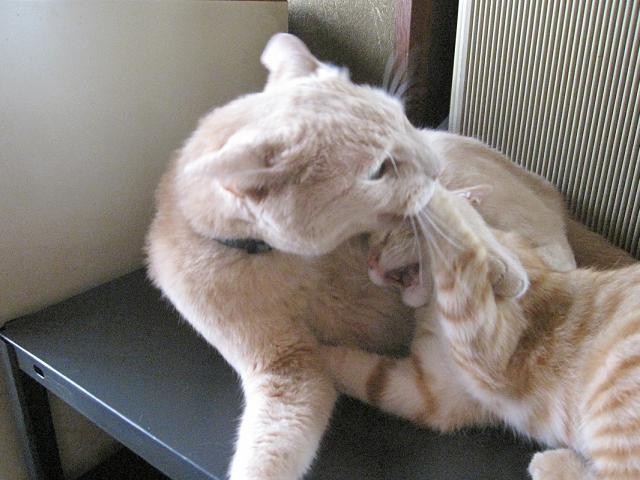 パタパタ動くシッポに気づき、下にいた末娘が起きてしまいました。