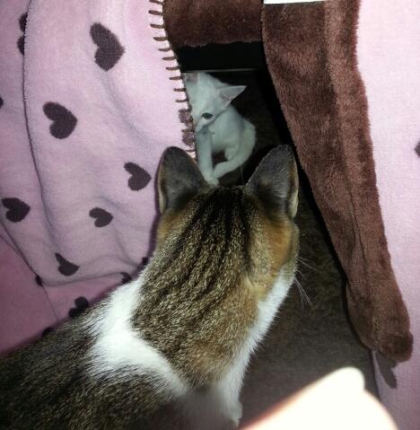 私にしがみつきトレーナーの中に逃げてしまった(笑)