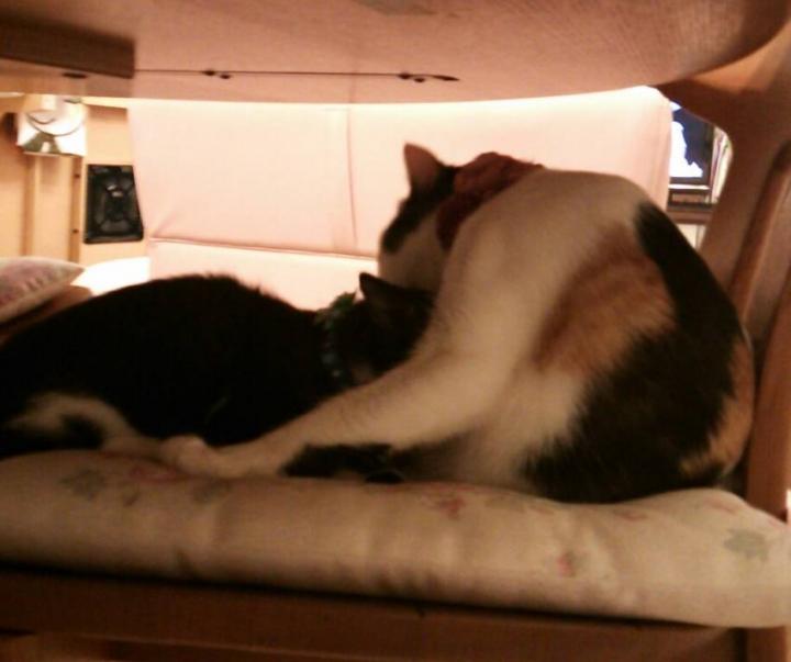 最初ミンちゃんは怒っていましたが、バロンのしつこさに負けたのか今では観念したようです。でも痛いみたいで時々ミンちゃんがバロンを噛んでいます。