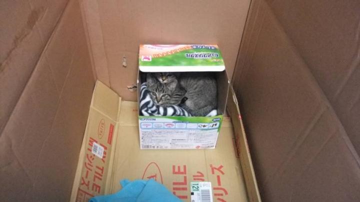 最近コロンちゃん大好きな箱📦 ちょっとポーズを調整〜 疲れた〜 V型顔に〜!