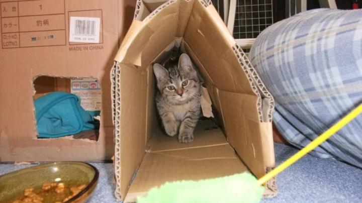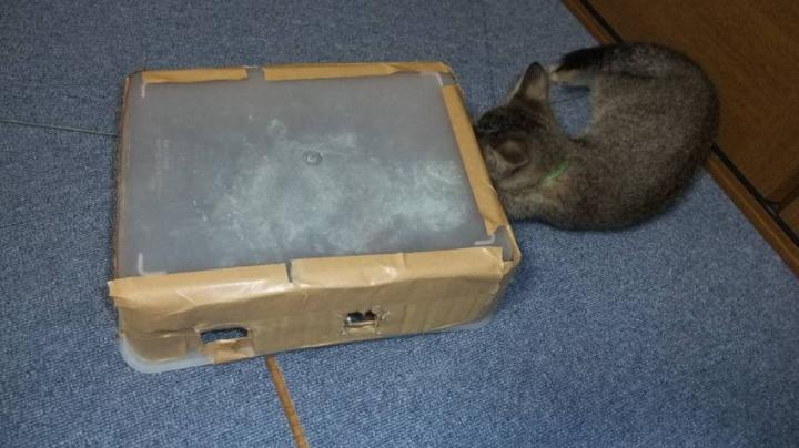 1匹が入ってもう1匹と小穴でちょっかい出したり出されたり。