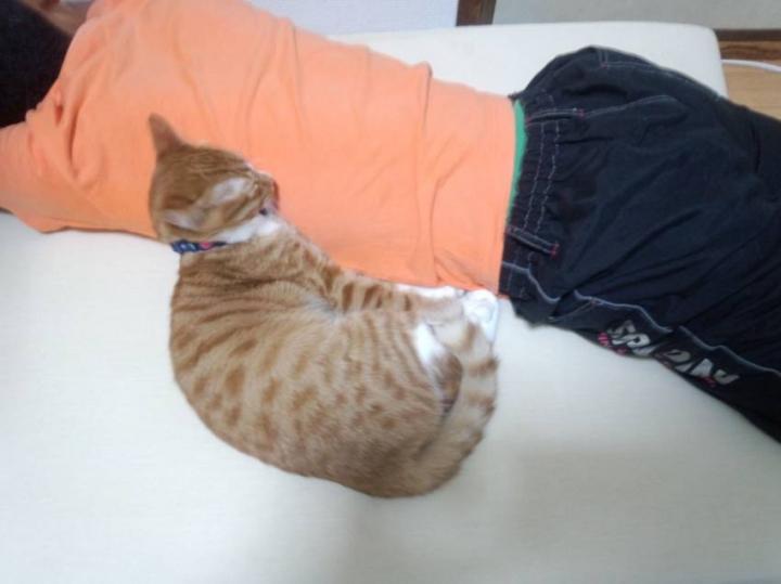 やけにきなこ様…静かだと部屋を覗いたら…お兄ちゃんとお昼寝中(゚o゚;