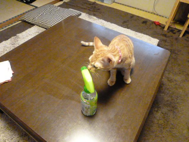 ななはなぜかテーブルを拭こうと除菌スプレーをするとどこにいても聞きつけてダッシュで飛んできます。