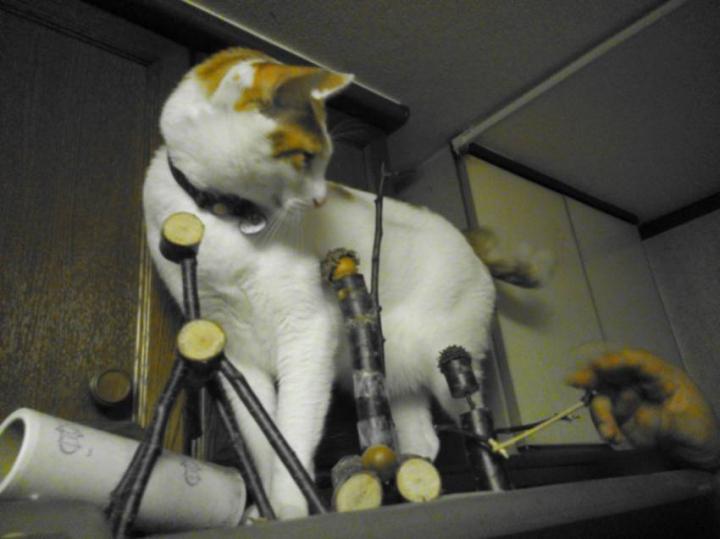 今日も朝から木の置物をガジガジ...。(^。^;)