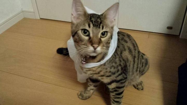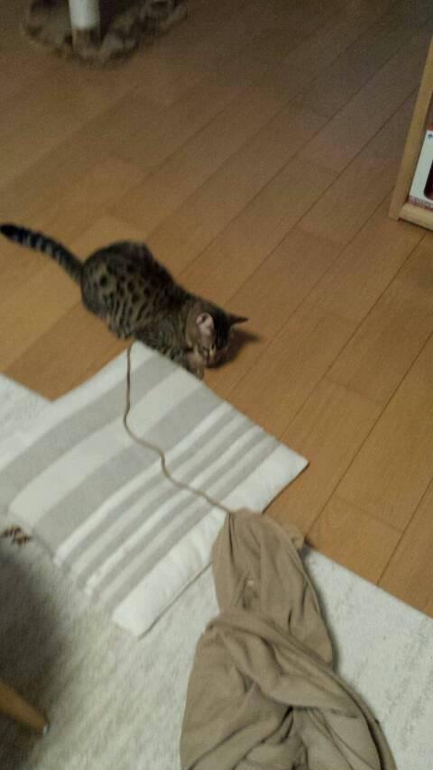 おかさんのパーカーの紐をくわえて、パーカーごと持ち去ろうとしたけど、重さと摩擦でうまくいかない(笑)