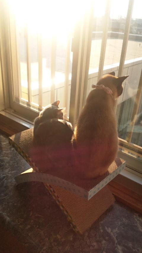 うちは3Fなんで いつもここから 日向ぼっこをしながら 車や鳥を見て居ます。