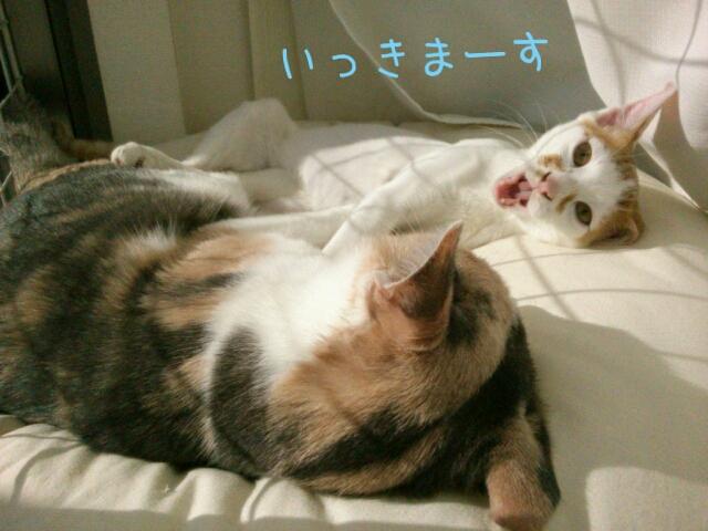 カメラ目線…仲良く日向ぼっこしたらいぃじゃんー