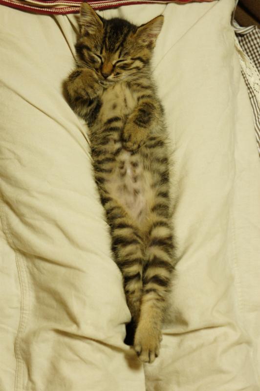 母の膝の上で遊びながら寝落ちしたミロちゃん