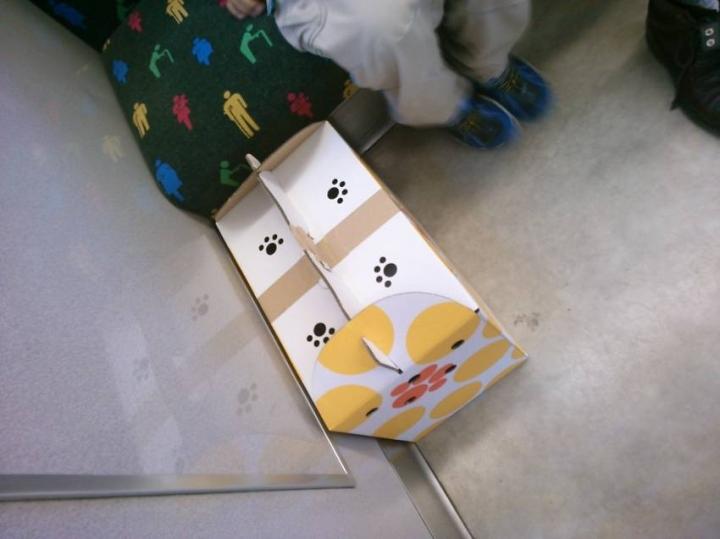 保護主さんが、「今日連れて帰ってみますか?」と言ってくれて、今日はお見合いだけでまさか連れて行けるなんて思ってなかったので、もうテンション上がりまくりで、「是非っ!!」てお願いして、ケースまで用意してもらって、小3の息子と同額の運賃払って、満員電車にゆられて一緒に帰って来ちゃいました??。(*^.^*)