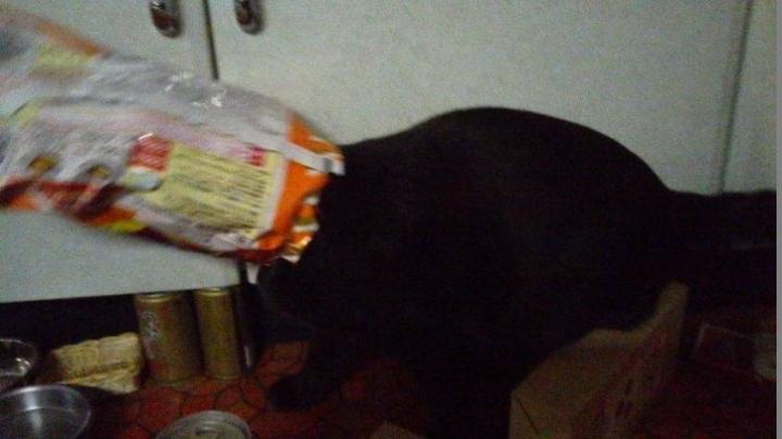 冷凍グラタンの空き袋に残るチーズの匂いに魅かれたもよう。