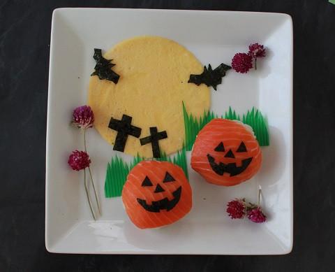 サーモンの手毬寿司をジャックランタン風に仕上げ~