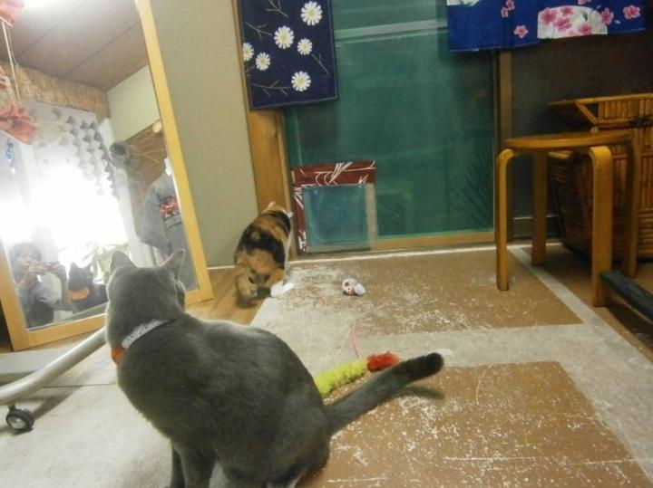 鏡に映るゆずと私・・・「早く行けよ~~」の顔