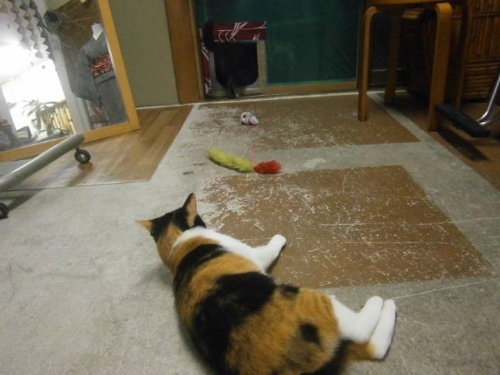 網戸に猫ドアがついていますが、夏はいいけど冬は寒いので