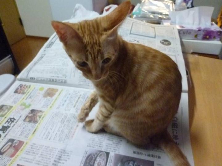 パソコンの邪魔もしますが新聞もお好きなようで・・・