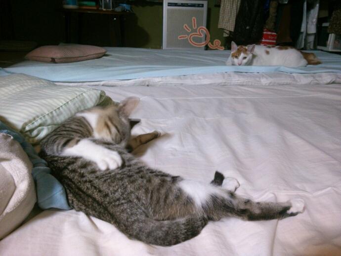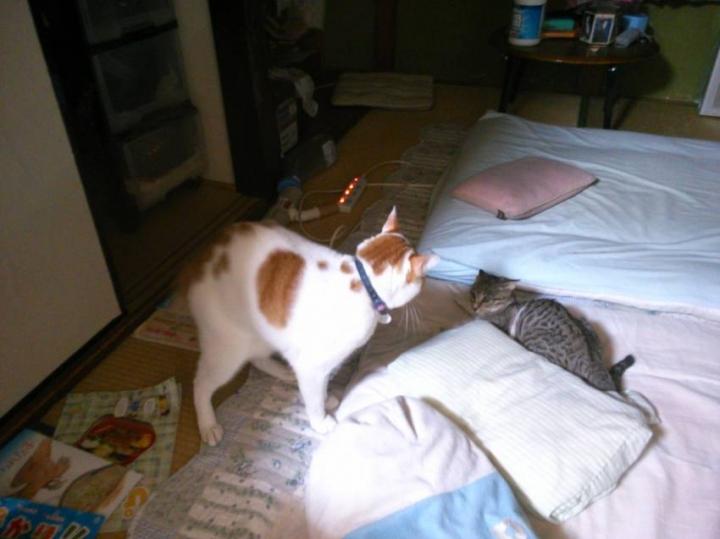 暫く経ってもどっちも降りてこない...。鳴き声もしない。物音もしないし、どうなってんの??と思ってそーっと行ってみた。('_'?)