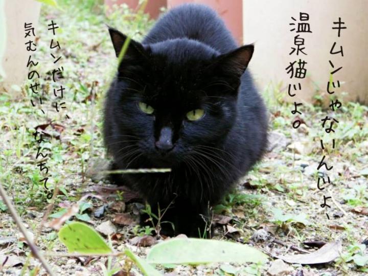 その温泉のまわりをウロウロしている黒猫に出会いました。