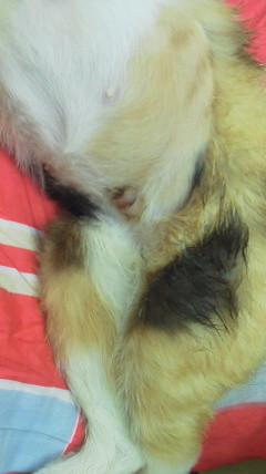 そう言えば、ちょっとわかりにくいけど尻尾も単に毛が少なくて曲がって見えていましたね
