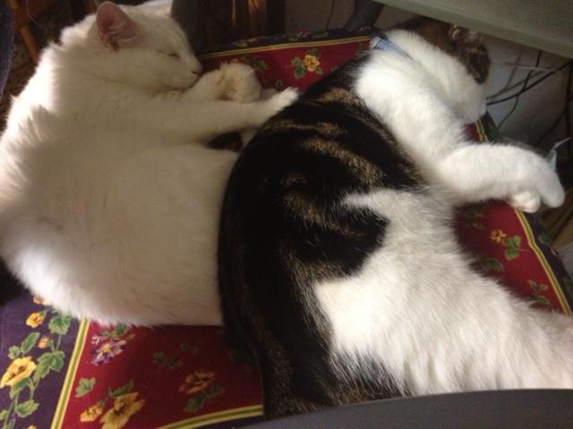 今日の締めは、狭い椅子で仲良く寝てるマロ&マリーです♪