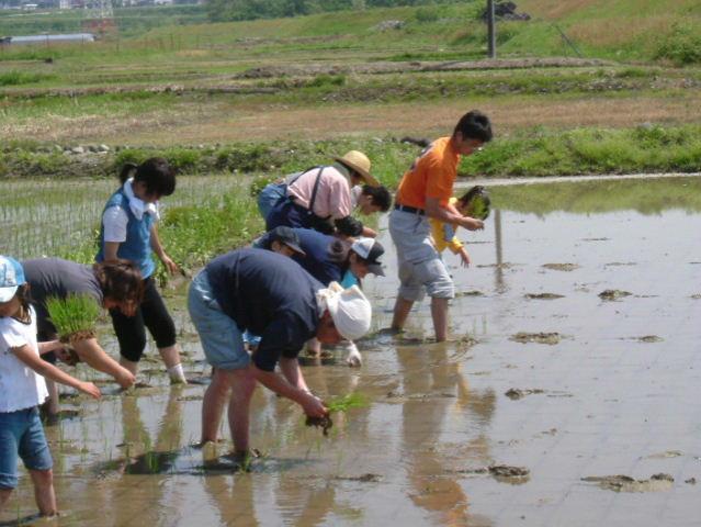 今年は去年よりも田んぼの面積が増えました。でもみんなでやればあっと言う間に終わっちゃいます。どろんこになりながらワイワイガヤガヤと楽しく作業を進めました。収穫の秋が楽しみです\(^_^)/ …でももう秋なんですけどね。