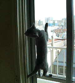 窓の外にトンボを発見し網戸に登ったが降りれなくなった麻呂