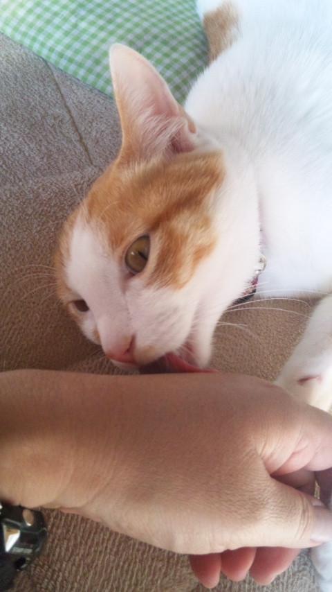 手を伸ばしたら トウイがなめてくれました^^
