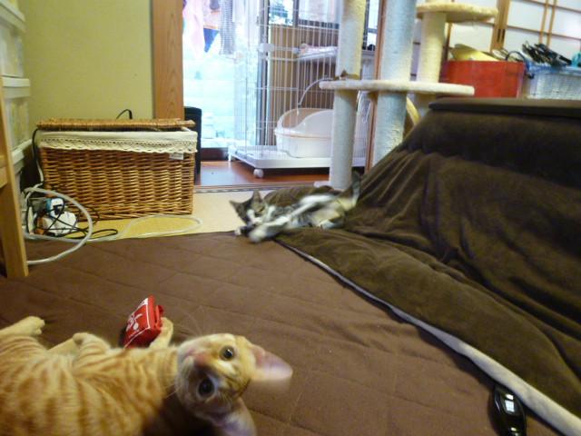 他人の遊んでるおもちゃに興味があるのは人間もにゃんずも同じなんですね~