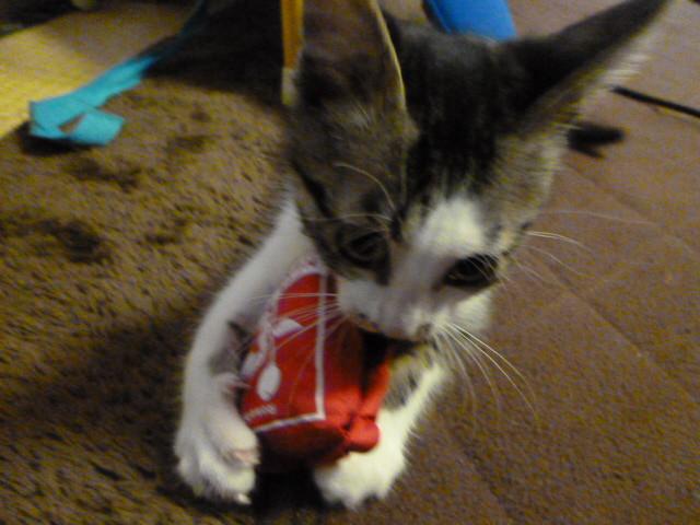 いつもチョイチョイ自分で動かして遊んだり、くわえて歩いてたりします。