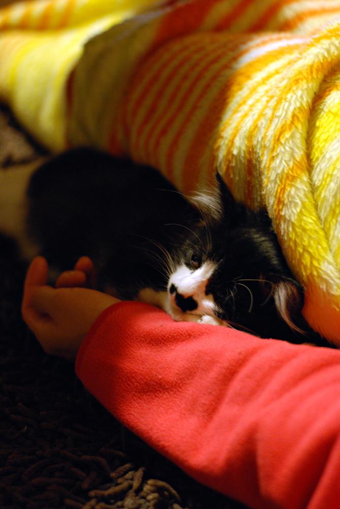 その膝にすかさず載って、寝息をたてはじめます。