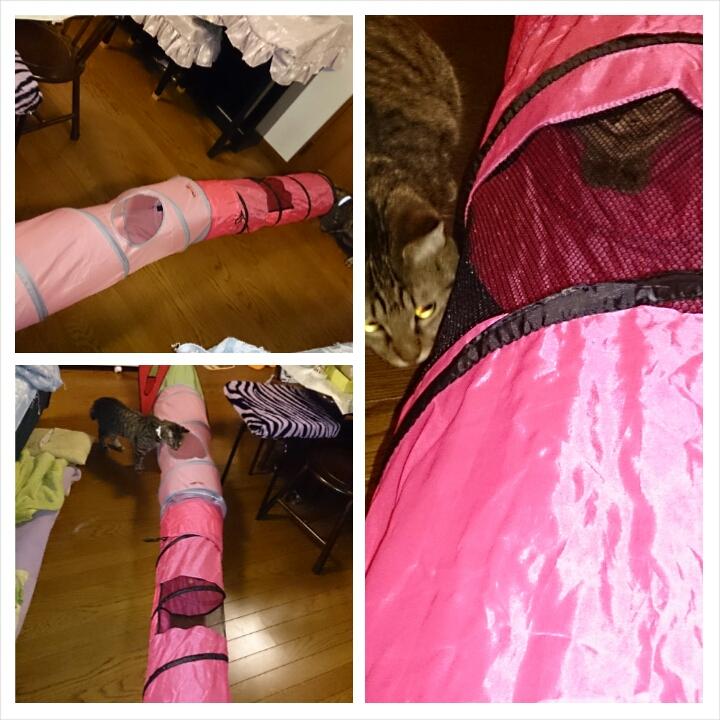 ニャンコ達は、喜んで駆け抜けて遊んでるけど 狭い部屋が余計に狭くなってる(◎-◎;)
