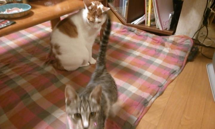 このところみかんが特にトムに激しくつきまとい、ちょっと発情期っぽい反応なのですが、若干5ヶ月でもそんな風になるのでしょうか...?