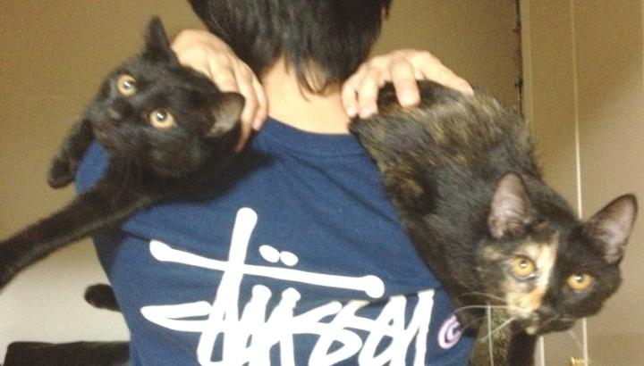 前猫が腎不全で死んでしまいションボリ。 でも、すぐに次の猫を探して、今や生まれて初めての多頭飼い生活を満喫中! しかも、二匹とも仔猫。 やっぱ猫だわぁ〜