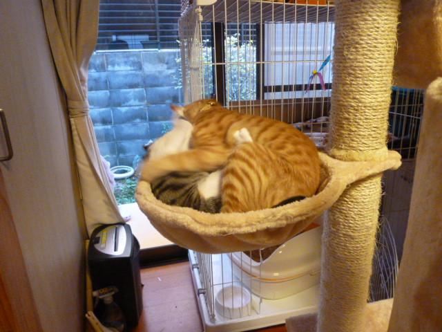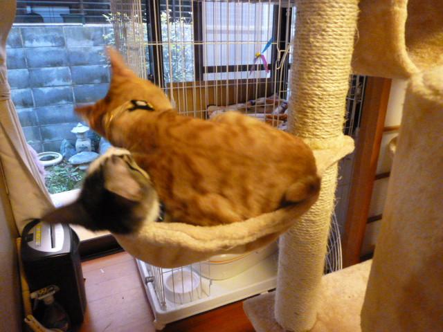 今日、フリーにしているとななはいつものハンモックに居たいのにそらが邪魔を・・・