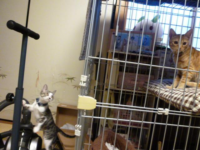 しばらくするとあれ?ななさん、そらのケージに入ってる。