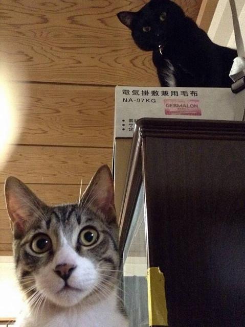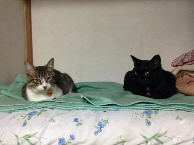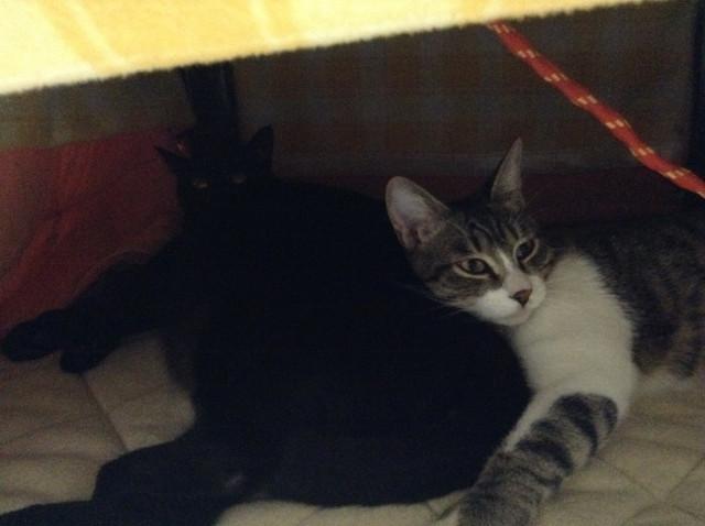 11/29撮影。いつも微妙な距離を空けて寝ていることが多いのですが、時々、くっついて寝ています。
