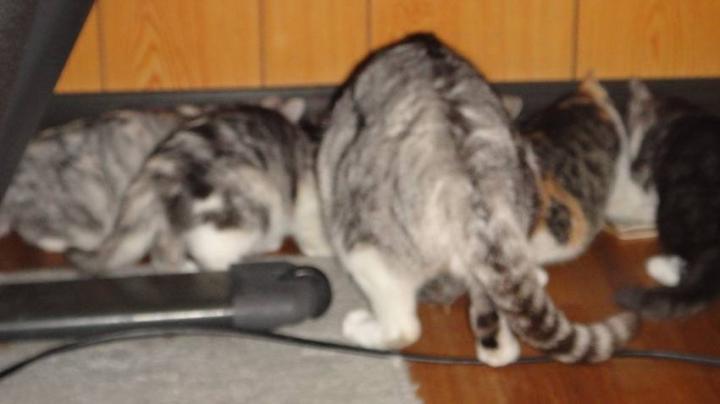 明日お届けに行くことになったので、お母さん猫と弟妹猫で最後の夕食になります。