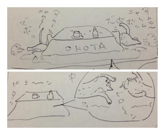 シープフリースクロスをかけたテーブルはホットカーペットとガスファンヒーターの風で随分暖かい♪