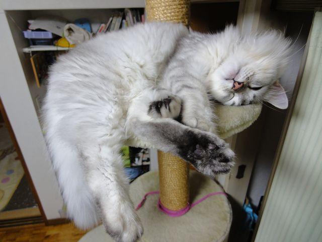 キャットタワーの高い所でグー!