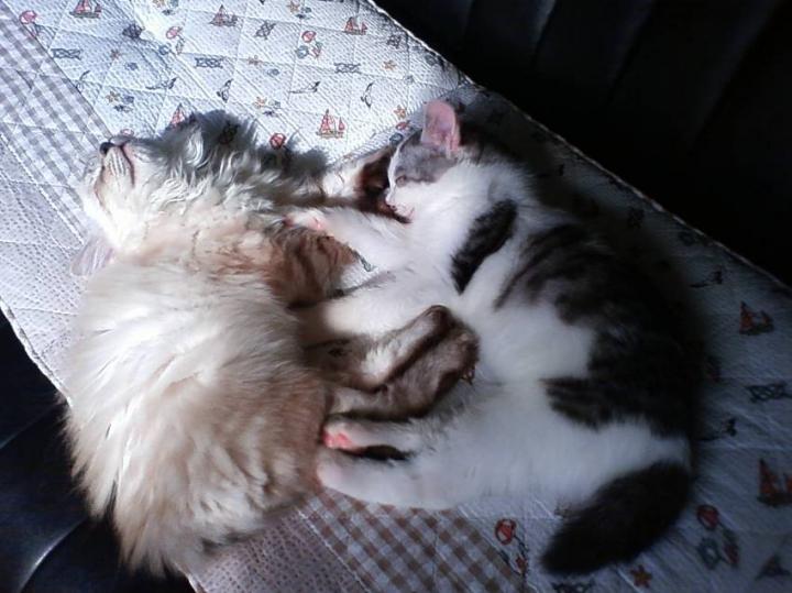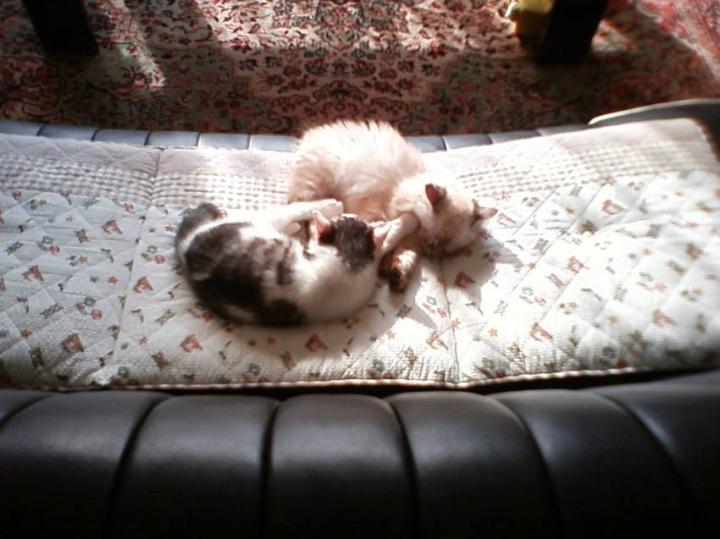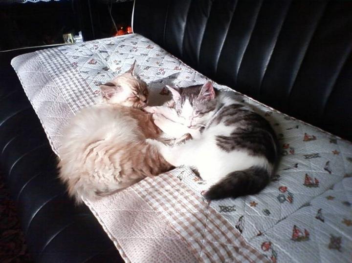 ソファーの上で子猫達は暖かな日差しをたっぷりと浴びて