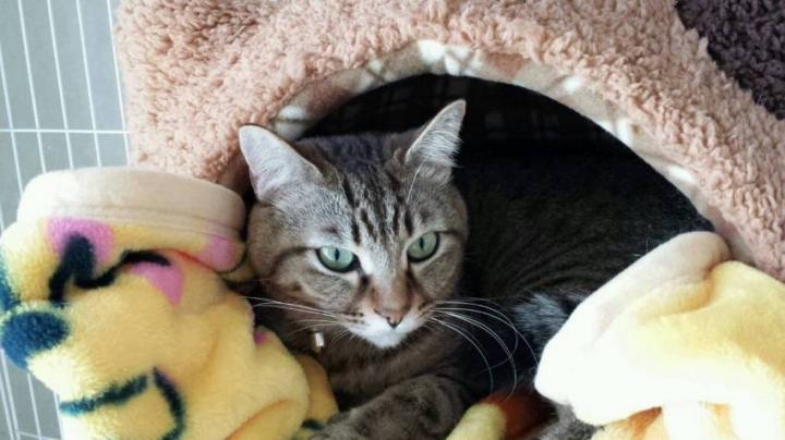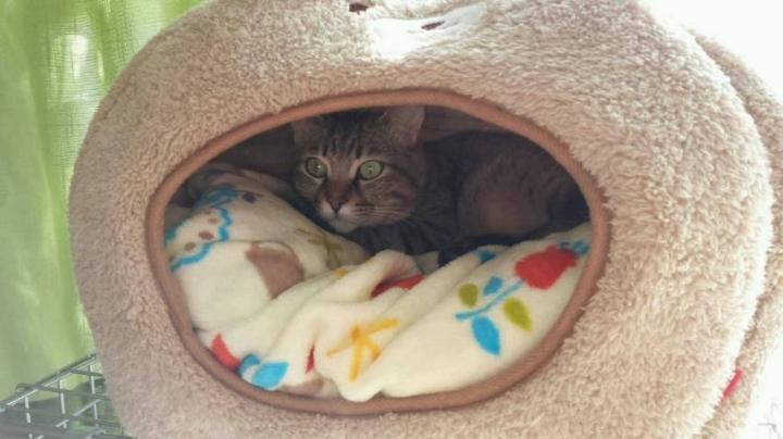 ニコのネコハウスで、寝起きのドラ。