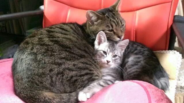 病院にて、とてもおびえて逃げようとするのを捕まえたら、今度は私にしがみついてきたので、先生が