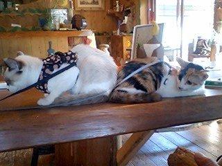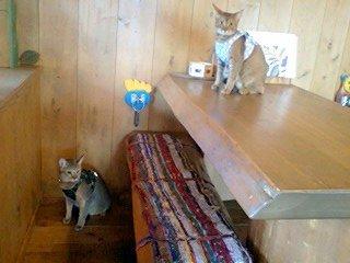 お店の方にネコ4匹とイヌ1匹ですけど大丈夫ですか・・・?と聞きに行くと猫を連れてくる人は珍しいらしく歓迎してくれました( '∇')