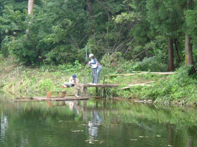 こんな感じで楽しんだ二日間でした。が、実は夜、池の近くに作った山小屋で仲間と二人で寝たのですが、一緒に寝た先輩がモノスゴイいびきで夜中の2時に起こされ、それからまったく寝られませんでした(≧◇≦)(ちなみに山小屋はマイホームに貼ってある写真に載ってます、この時はまだ未完成ですが)