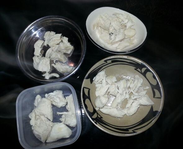 鶏のササミを茹でてほぐしただけですが