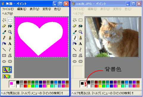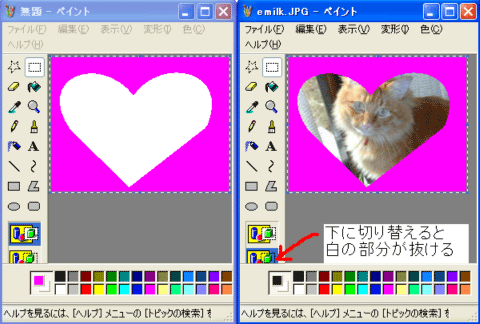 4.新しい方の「無題」を変形→キャンバスの色とサイズで、写真と同じ大きさにして、中が白い絵を描きます。例はハート型