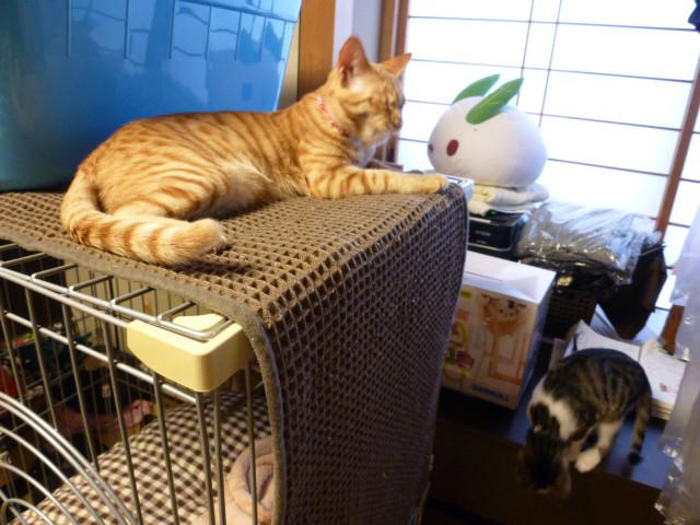 ななさんはレディなので静かに食べているのに、ななの所にまで食べに行ってました。