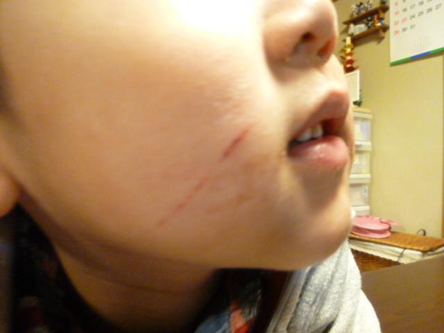 昨夜こたつで眠ってしまった息子ちゃんの顔にキズが・・・