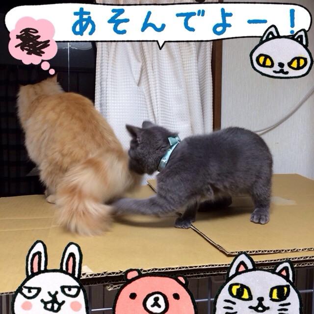 仕方なく尻尾で遊んでやって、ちょっと度が過ぎたら「アンタうざいわよっ!」ってやり返しますが、全然本気じゃない感じ(*^^*)